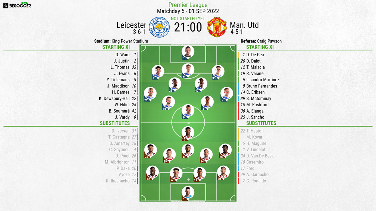 . Leicester City is going head to head with Manchester United starting on 1 Sep 2022 at 1900 UTC at King Power Stadium stadium Leicester city England. 81 Leicester City 0-1 Manchester United. 1 day agoView the starting lineups and subs for the Leicester vs Man Utd match on 01092022 plus access full match preview and predictions.